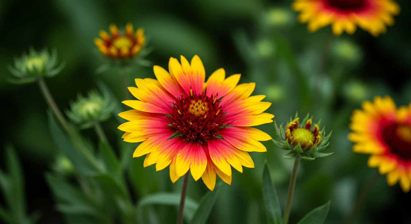 Gaillardia earned its nickname as the blanket flower for its ability to reseed and spread its vibrant, daisy-like flowers throughout the garden. These native wildflowers bloom in warmer temperatures and last until the first frost of the autumn season. The fiery red and yellow-tipped flowers also attract natural pollinators like hummingbirds and butterflies.