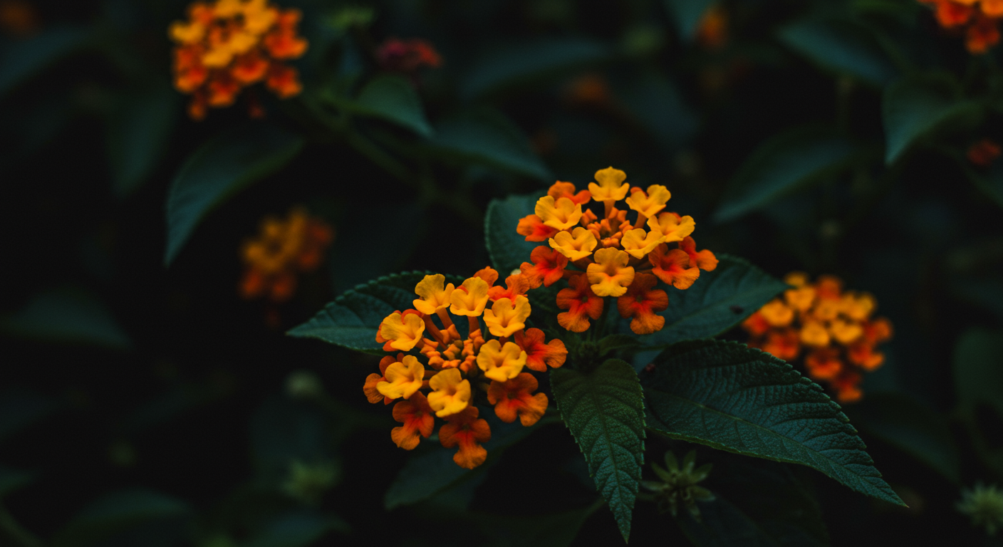 An unexpected choice, lantana plants perfectly fit in the hanging baskets over your outdoor living room. One of their defining characteristics is the unique scent their flowers and leaves give off which often attracts butterflies. Lantanas should receive at least six hours of direct sunlight every day and be soaked at least once a week. If they don't get enough light, these flowering shrubs can develop powdery mildew on their leaves.