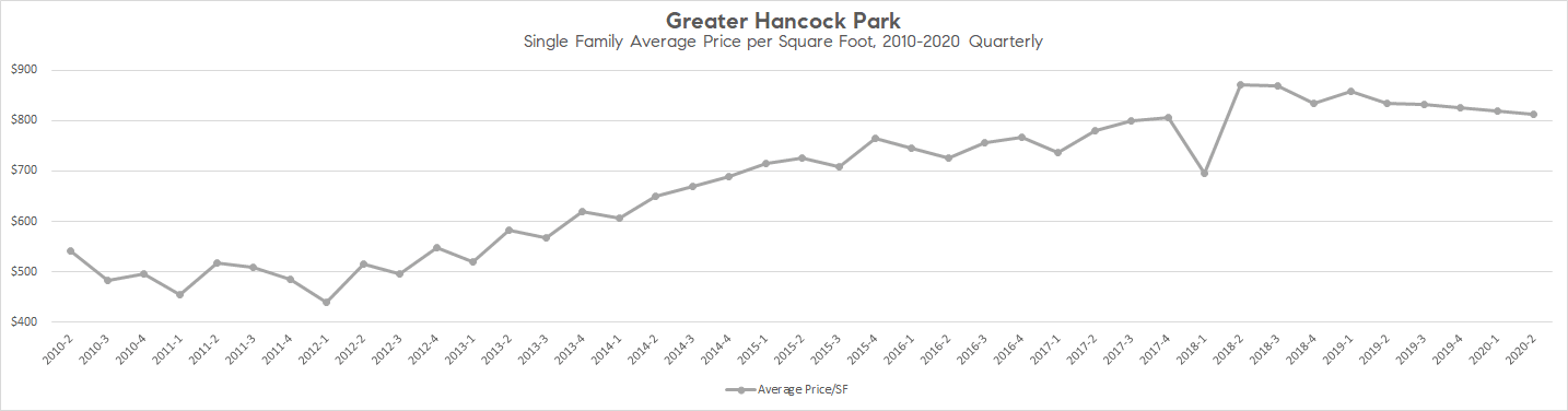 Price per Square Foot, 10 Year Quarterly