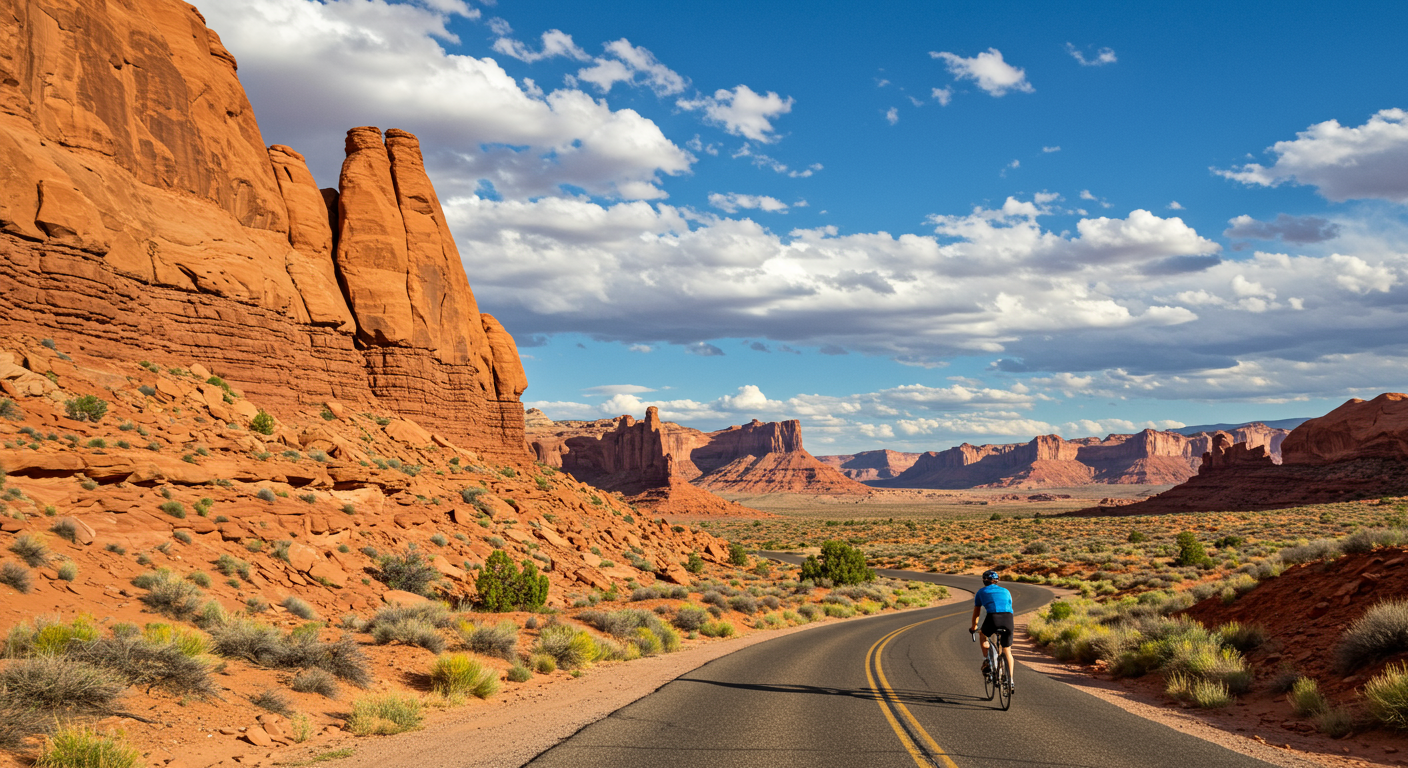 A rider descends past Utah’s iconic red-rock formations on Trek Travel’s bike tour in Bryce and Zion national parks. (Trek Travel)