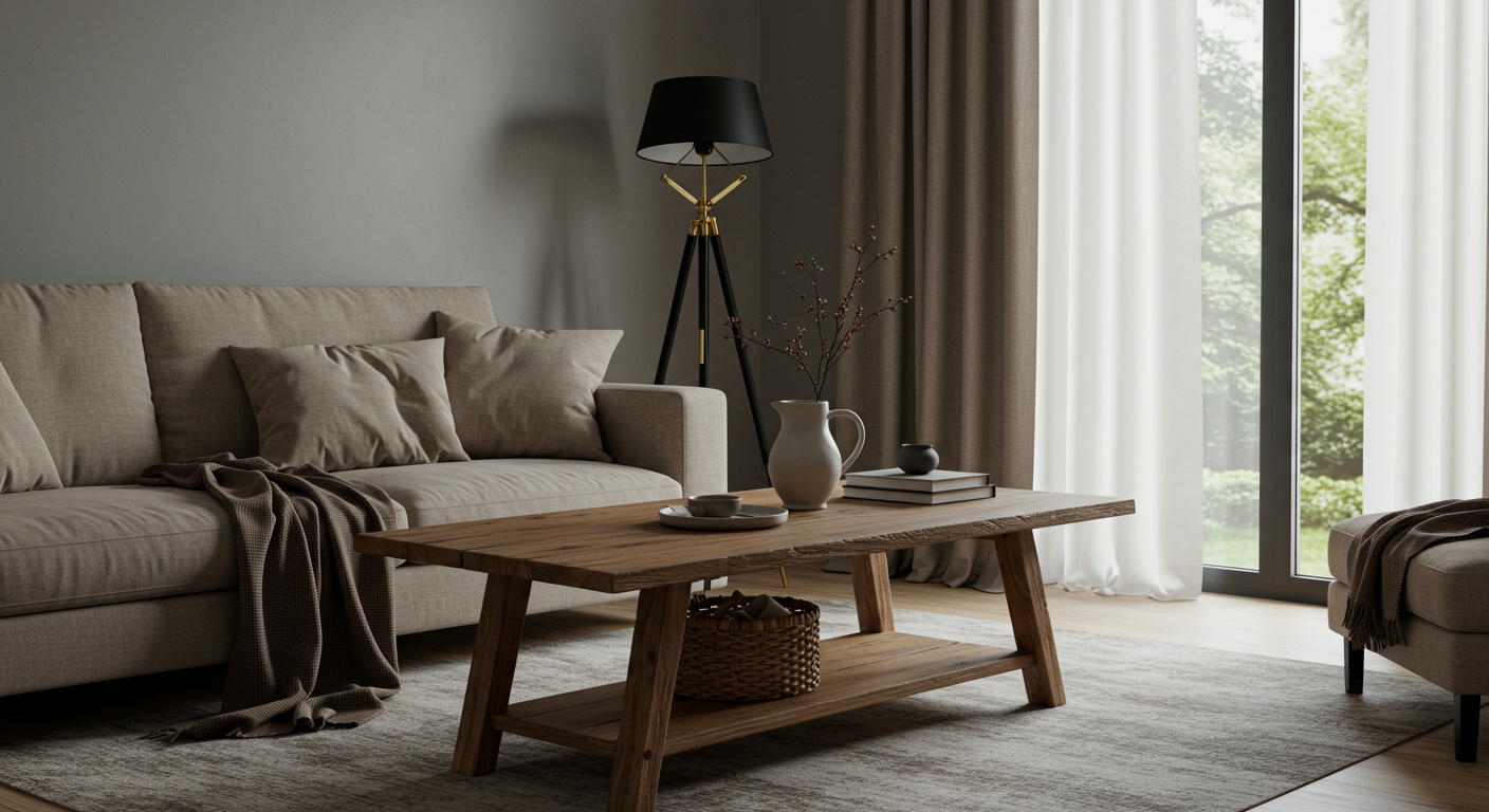 Reclaimed wood is the core material that holds this look together – look for unique pieces that show plenty of grain and texture, rather than items that are perfectly finished.