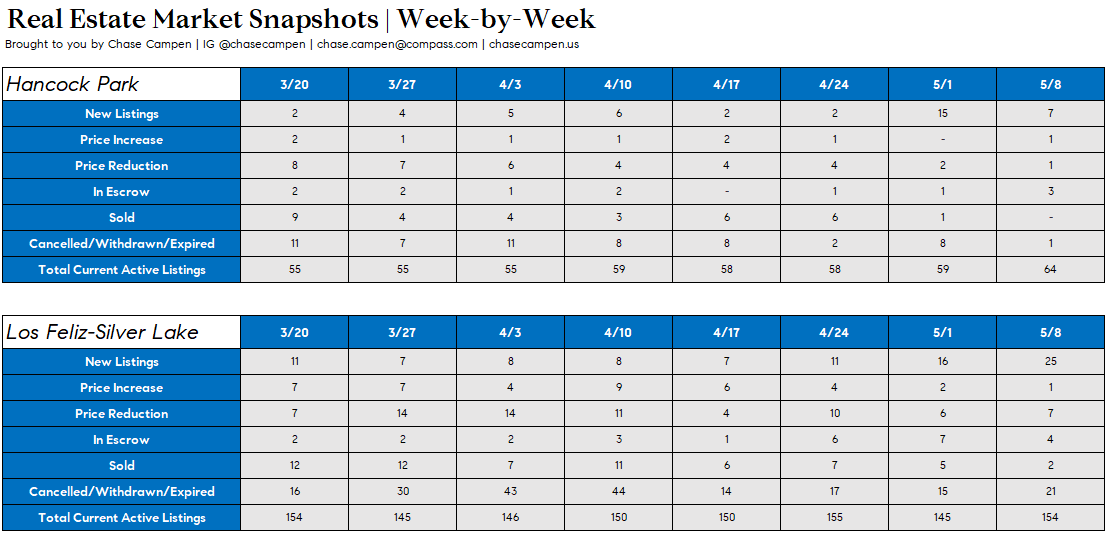 Every Friday, we bring you this Los Angeles Real Estate market snapshot. If you would like more information on a specific market or neighborhood or comparisons to the same time last year, please feel free to email me at [email protected]. I'm here to help.