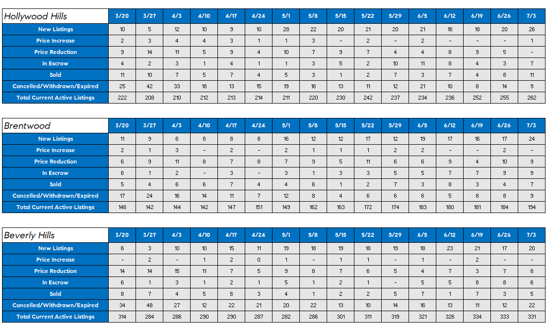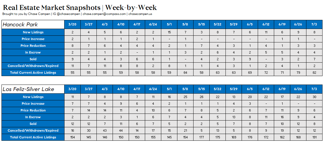 Every Friday since the start of the Safer-at-Home order, we bring you this Los Angeles Real Estate market snapshot. If you would like more information on a specific market or neighborhood or comparisons to the same time last year, please feel free to email me at [email protected]. I'm here to help.