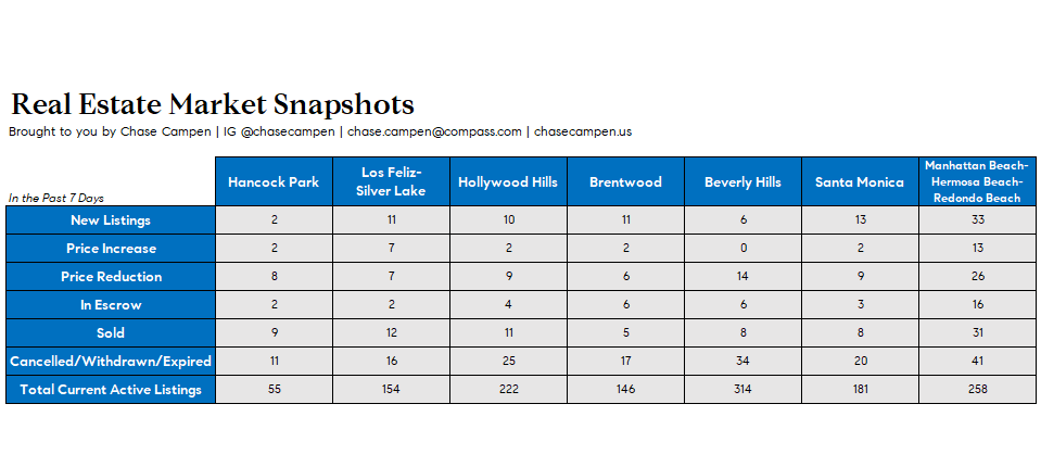 Every Monday and Friday, we bring you this Los Angeles Real Estate snapshot. We are still seeing a healthy flow of transactions and will continue to monitor and keep you informed in the days and weeks ahead.