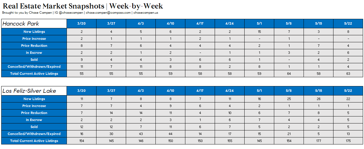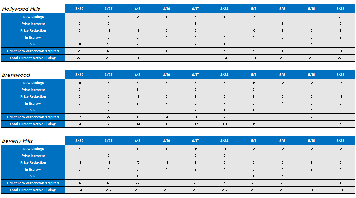 Every Friday since the start of the Safer-at-Home order, we bring you this Los Angeles Real Estate market snapshot. If you would like more information on a specific market or neighborhood or comparisons to the same time last year, please feel free to email me at [email protected]. I'm here to help.
