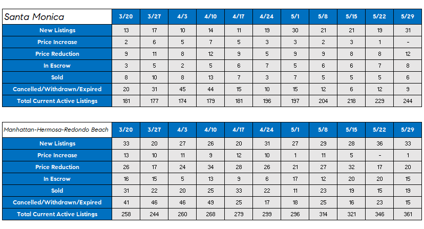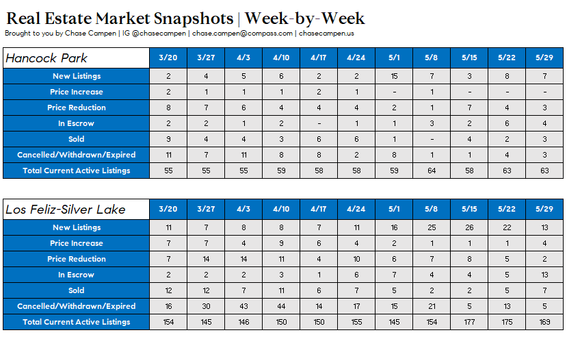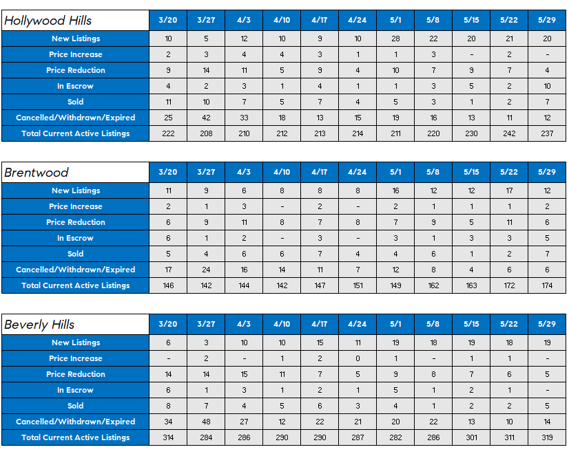 Every Friday since the start of the Safer-at-Home order, we bring you this Los Angeles Real Estate market snapshot. If you would like more information on a specific market or neighborhood or comparisons to the same time last year, please feel free to email me at [email protected]. I'm here to help.