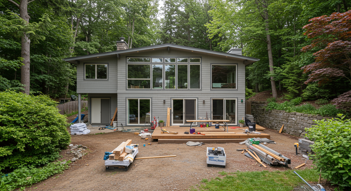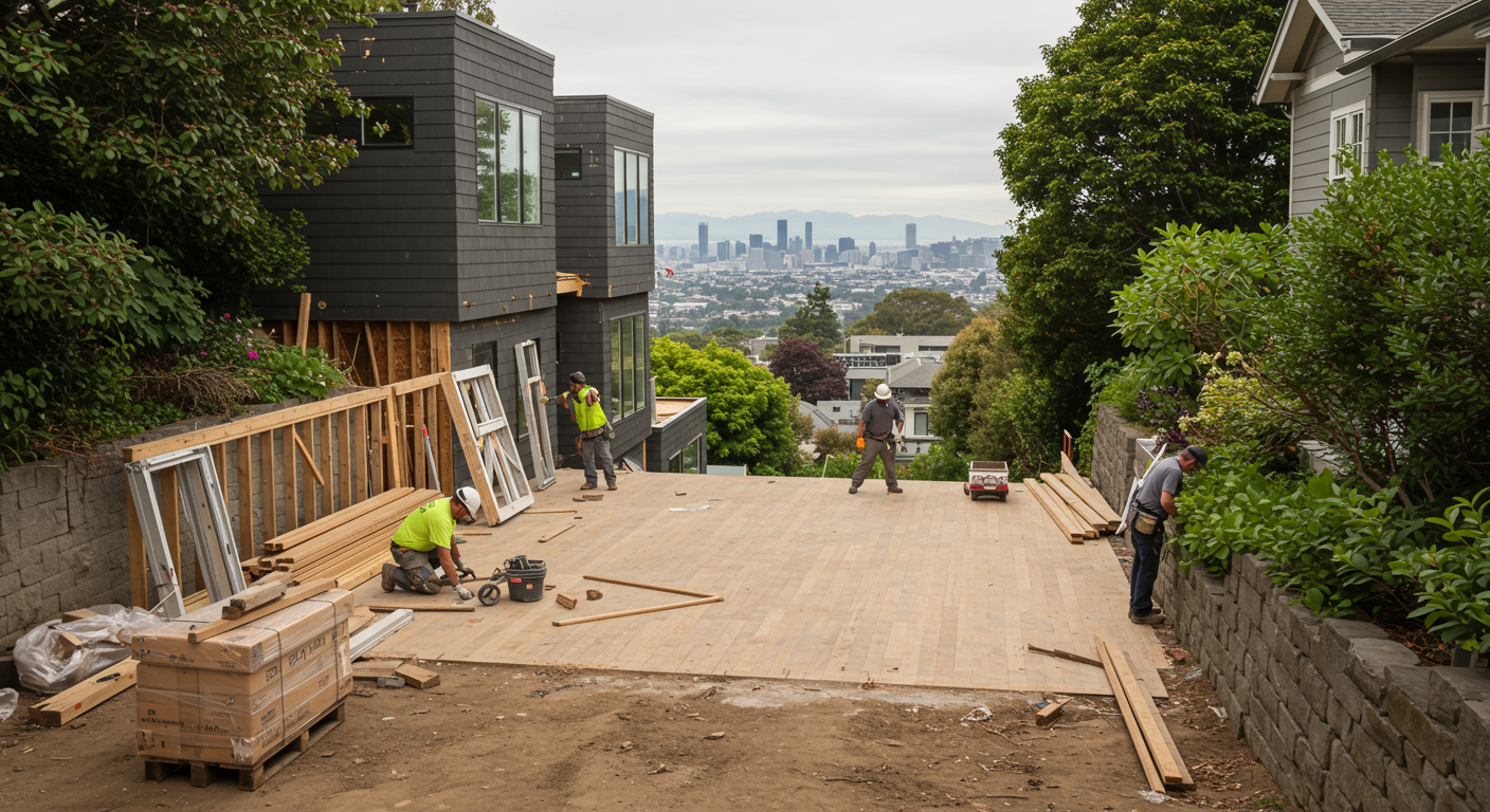 Hillside construction and narrow streets can provide some challenges, but one of the keys for us, is to try and have everything (all windows, doors, tiles, plumbing fixtures, etc.) onsite BEFORE we begin demo and construction. We like to minimize, as best we can, the amount of time that we are disrupting someone’s life and home with construction. Most people are eager to start by demoing right away, but I have found its best to wait, have all the materials onsite and then go straight through, without any delays caused by waiting for materials that were supposed to be delivered by a certain date, but got delayed for one unforeseen circumstance or another. It’s important to keep momentum and focus going.